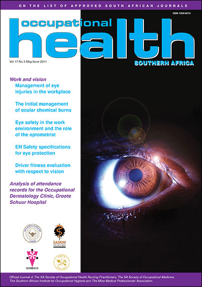 Occupational Health Southern Africa is on the Department of Higher Education and Training’s list of Approved South African Journals; authors of peer-reviewed papers thus qualify for subsidies for their affiliated tertiary institutions. It is also listed in African Index Medicus; and is on the International Committee of Medical Journal Editors (ICMJE) website list of journals following the ICMJE recommendations for the conduct, reporting, editing and publication of scholarly work in medical journals.
