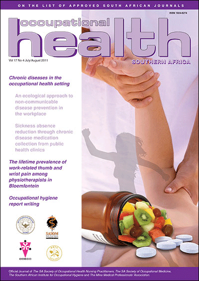 Occupational Health Southern Africa is on the Department of Higher Education and Training’s list of Approved South African Journals; authors of peer-reviewed papers thus qualify for subsidies for their affiliated tertiary institutions. It is also listed in African Index Medicus; and is on the International Committee of Medical Journal Editors (ICMJE) website list of journals following the ICMJE recommendations for the conduct, reporting, editing and publication of scholarly work in medical journals.