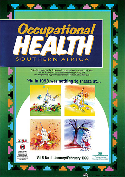 Occupational Health Southern Africa is on the Department of Higher Education and Training’s list of Approved South African Journals; authors of peer-reviewed papers thus qualify for subsidies for their affiliated tertiary institutions. It is also listed in African Index Medicus; and is on the International Committee of Medical Journal Editors (ICMJE) website list of journals following the ICMJE recommendations for the conduct, reporting, editing and publication of scholarly work in medical journals.
