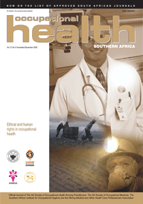 Occupational Health Southern Africa is on the Department of Higher Education and Training’s list of Approved South African Journals; authors of peer-reviewed papers thus qualify for subsidies for their affiliated tertiary institutions. It is also listed in African Index Medicus; and is on the International Committee of Medical Journal Editors (ICMJE) website list of journals following the ICMJE recommendations for the conduct, reporting, editing and publication of scholarly work in medical journals.