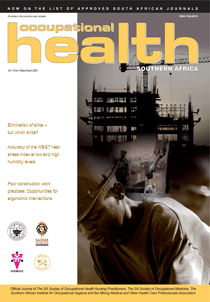 Occupational Health Southern Africa is on the Department of Higher Education and Training’s list of Approved South African Journals; authors of peer-reviewed papers thus qualify for subsidies for their affiliated tertiary institutions. It is also listed in African Index Medicus; and is on the International Committee of Medical Journal Editors (ICMJE) website list of journals following the ICMJE recommendations for the conduct, reporting, editing and publication of scholarly work in medical journals.