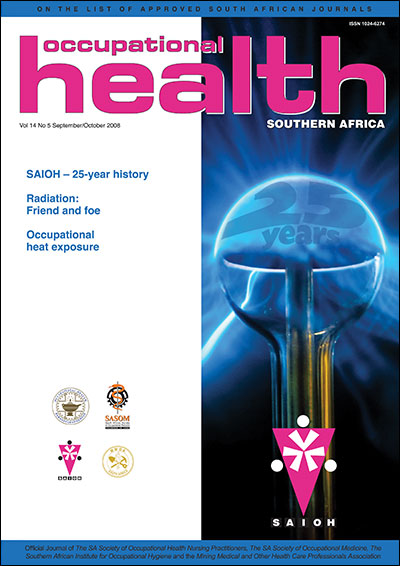 Occupational Health Southern Africa is on the Department of Higher Education and Training’s list of Approved South African Journals; authors of peer-reviewed papers thus qualify for subsidies for their affiliated tertiary institutions. It is also listed in African Index Medicus; and is on the International Committee of Medical Journal Editors (ICMJE) website list of journals following the ICMJE recommendations for the conduct, reporting, editing and publication of scholarly work in medical journals.