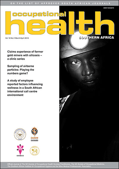 Occupational Health Southern Africa is on the Department of Higher Education and Training’s list of Approved South African Journals; authors of peer-reviewed papers thus qualify for subsidies for their affiliated tertiary institutions. It is also listed in African Index Medicus; and is on the International Committee of Medical Journal Editors (ICMJE) website list of journals following the ICMJE recommendations for the conduct, reporting, editing and publication of scholarly work in medical journals.