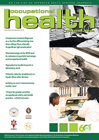 Occupational Health Southern Africa is on the Department of Higher Education and Training’s list of Approved South African Journals; authors of peer-reviewed papers thus qualify for subsidies for their affiliated tertiary institutions. It is also listed in African Index Medicus; and is on the International Committee of Medical Journal Editors (ICMJE) website list of journals following the ICMJE recommendations for the conduct, reporting, editing and publication of scholarly work in medical journals.
