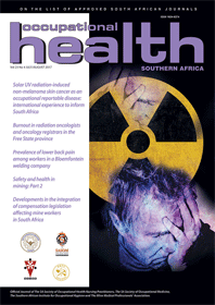 Occupational Health Southern Africa is on the Department of Higher Education and Training’s list of Approved South African Journals; authors of peer-reviewed papers thus qualify for subsidies for their affiliated tertiary institutions. It is also listed in African Index Medicus; and is on the International Committee of Medical Journal Editors (ICMJE) website list of journals following the ICMJE recommendations for the conduct, reporting, editing and publication of scholarly work in medical journals.