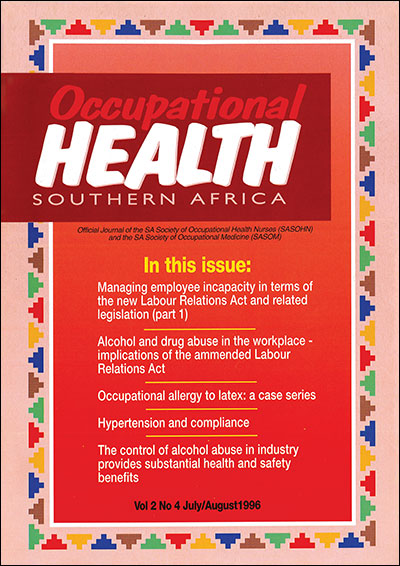 Occupational Health Southern Africa is on the Department of Higher Education and Training’s list of Approved South African Journals; authors of peer-reviewed papers thus qualify for subsidies for their affiliated tertiary institutions. It is also listed in African Index Medicus; and is on the International Committee of Medical Journal Editors (ICMJE) website list of journals following the ICMJE recommendations for the conduct, reporting, editing and publication of scholarly work in medical journals.